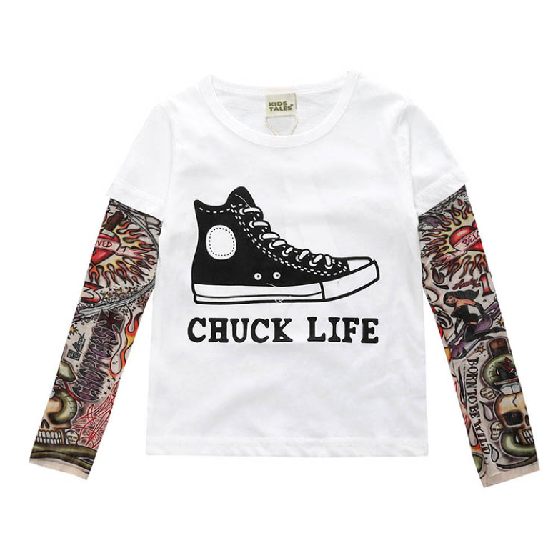Make their day with these super cool and unusual tattoo t-shirts for fun. The tattoo detailed sleeves makes believe the arms are completely covered in ultimate hardcore tattoos! Kids love this! Ā