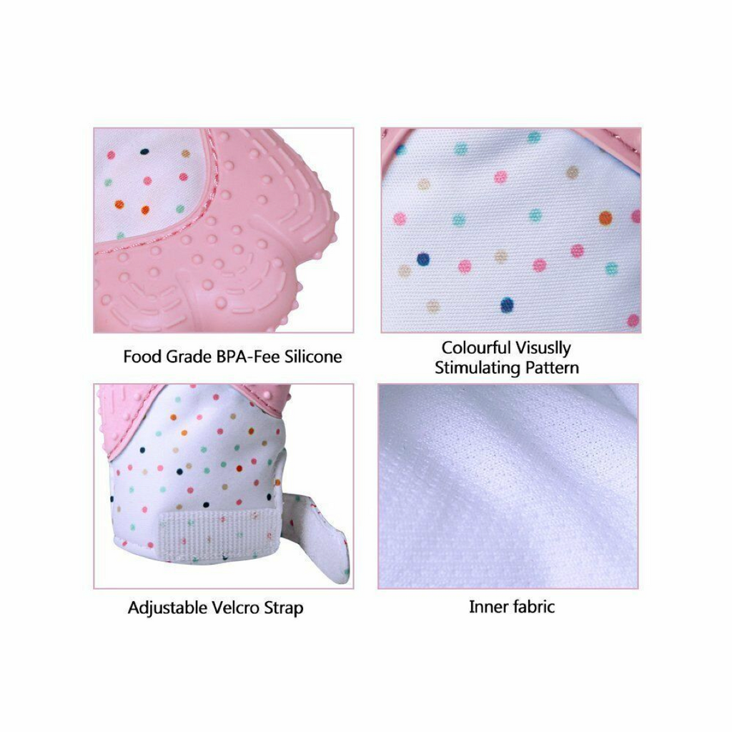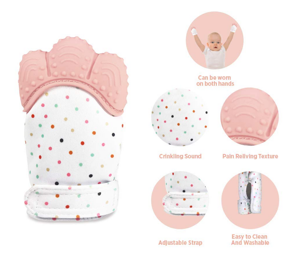 THE BEST TEETHING SOLUTION FOR YOUR LITTLE ONE: When babies are too young to hold onto a normal teether they become irritable and don't have the ability to self-soothe. This teething glove is the perfect solution to comfort them! Providing immediate relief and gum massage, the self-soothing glove also protects baby from chewing fingers, hands and scratching themselves.