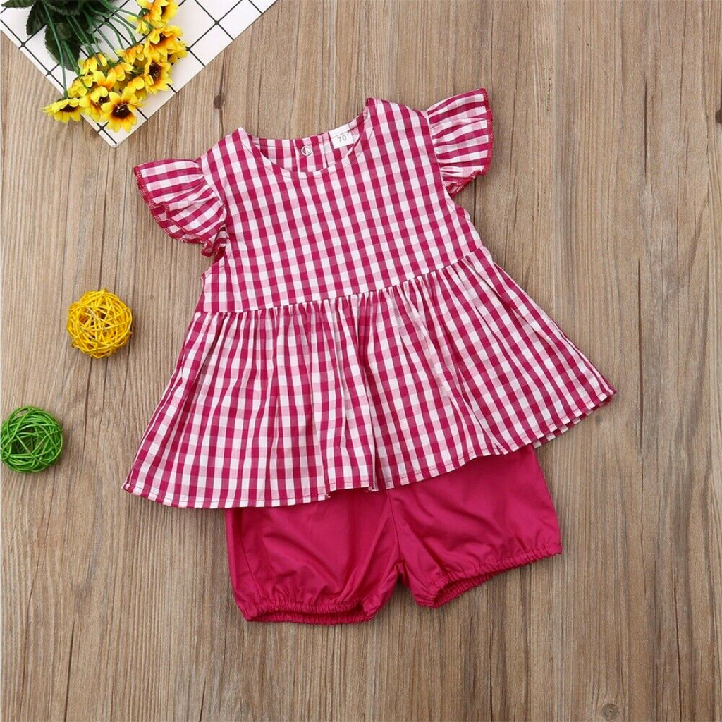 Baby Girl is going to love this summer with so many cute designs! This gingham pattern shirt and shorts set is light and breezy giving her ideal hot weather wear while keeping it fresh and stylishΒ π Pair with her most favourite sandals.