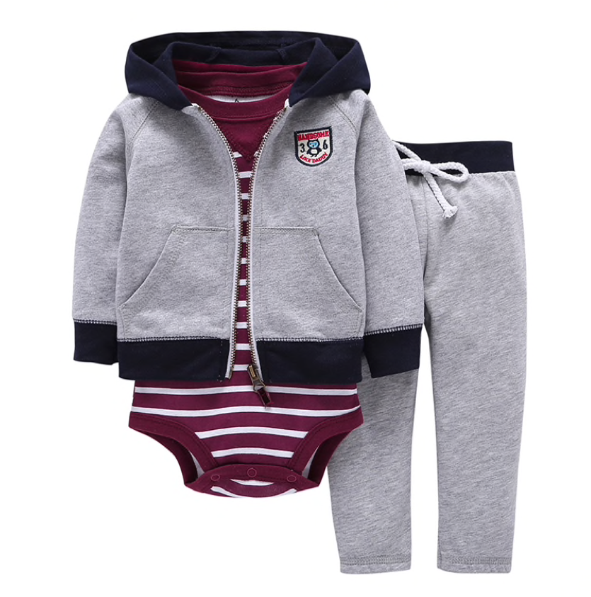 This 3 piece set includes a super soft cotton romper, a cosy cotton, hooded jacket with full front zip and soft cotton leggings with an elasticated waistband. For little menΒ 0-2 years this is an ideal comfort outfit, keeping them snug and feeling cosy, not to mention pretty cool all day long. Β  Β  Β Β