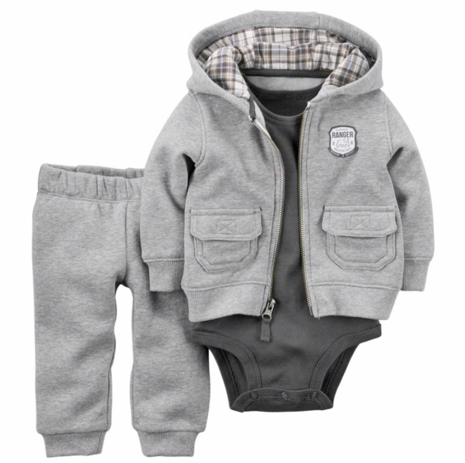 This 3 piece set includes a super soft cotton romper, a cosy cotton, hooded jacketย with full front zip and soft cotton leggings with an elasticated waistband. For little menย 0-2 years this is an ideal comfort outfit, keeping them snug and feeling cosy, not to mention pretty cool all day long. ย ย ย ย