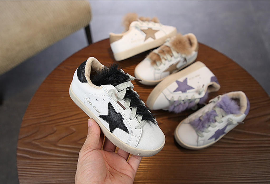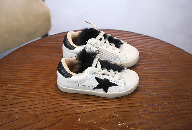 For the ultimate fashion statement without paying high-end prices, these sneakers are our first choice. The sleek, stylish design is candy for the eyes and the faux fur detail is an insane eye-catcher. Made of high quality material the sneakers are pure comfort, flexible for a great fit whilst providing secure stability with a lightweight, solid sole for the support required during your child's first adventures on foot until they're running around like mad chasing their dreams.